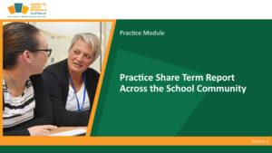 Practice Share Term Report Across the School CommunityPractice Share Term Report Across School Community examines the benefits and impacts of sharing the term report across the school community with fidelity. Participants learn what happens when sharing the term report across the school community is not conducted with fidelity, the barriers that may stand in the way of delivering well and how to overcome barriers so that sharing the term report across the school community can be delivered with fidelity. |