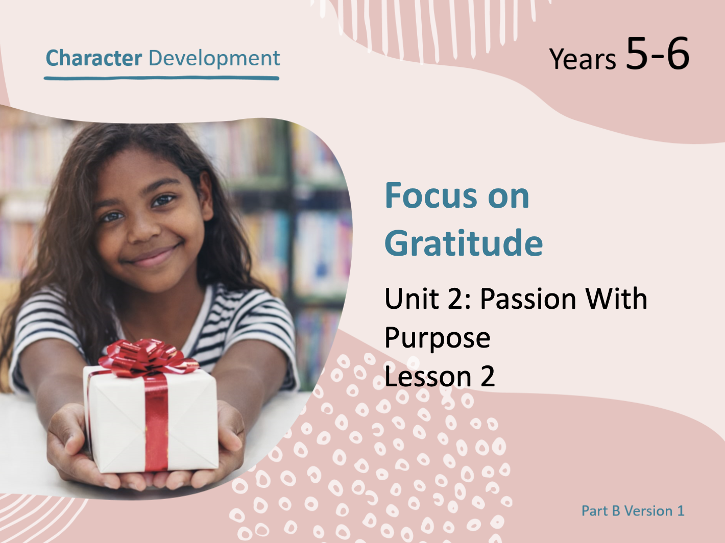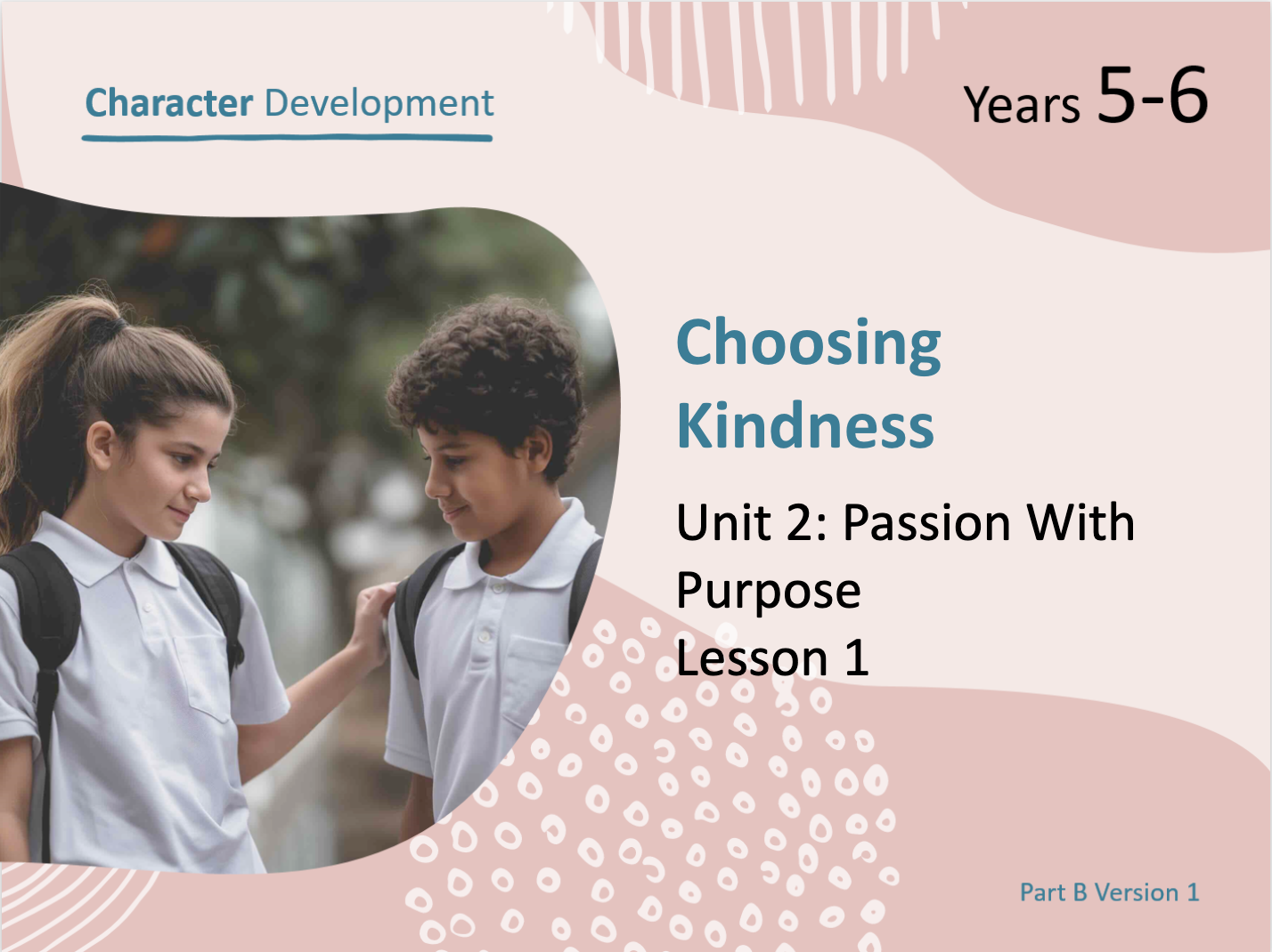 In this unit, students explore how kindness, gratitude and passion can work together to create meaningful change. Through real examples, discussion and reflection, students examine how noticing what they are grateful for can shape what they care about and how passion grows through effort and commitment.