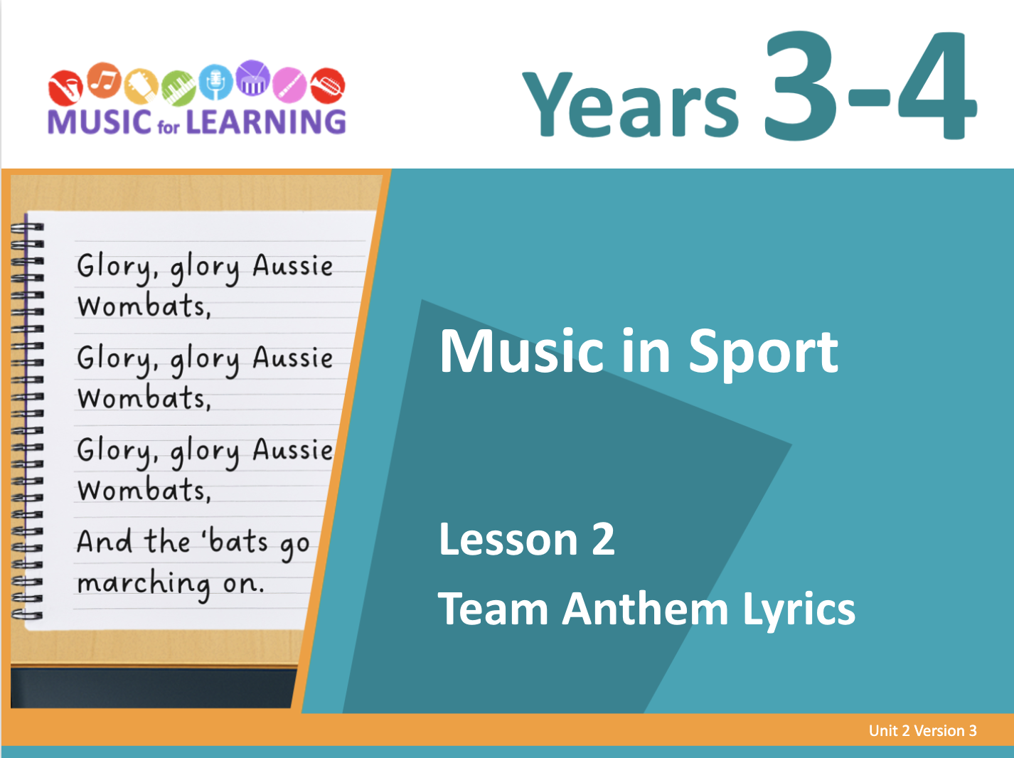 Music for Learning Unit 2 uses direct and explicit instruction to teach students the fundamentals of music. Through engaging, hands-on lessons built around themes such as travel, sport and culture, students explore rhythm, melody, dynamics and musical expression. With no prior music knowledge required, teachers are supported by structured guides, demo videos and audio resources that make lessons simple to deliver. The unit concludes with students applying their learning to perform and create music with confidence.